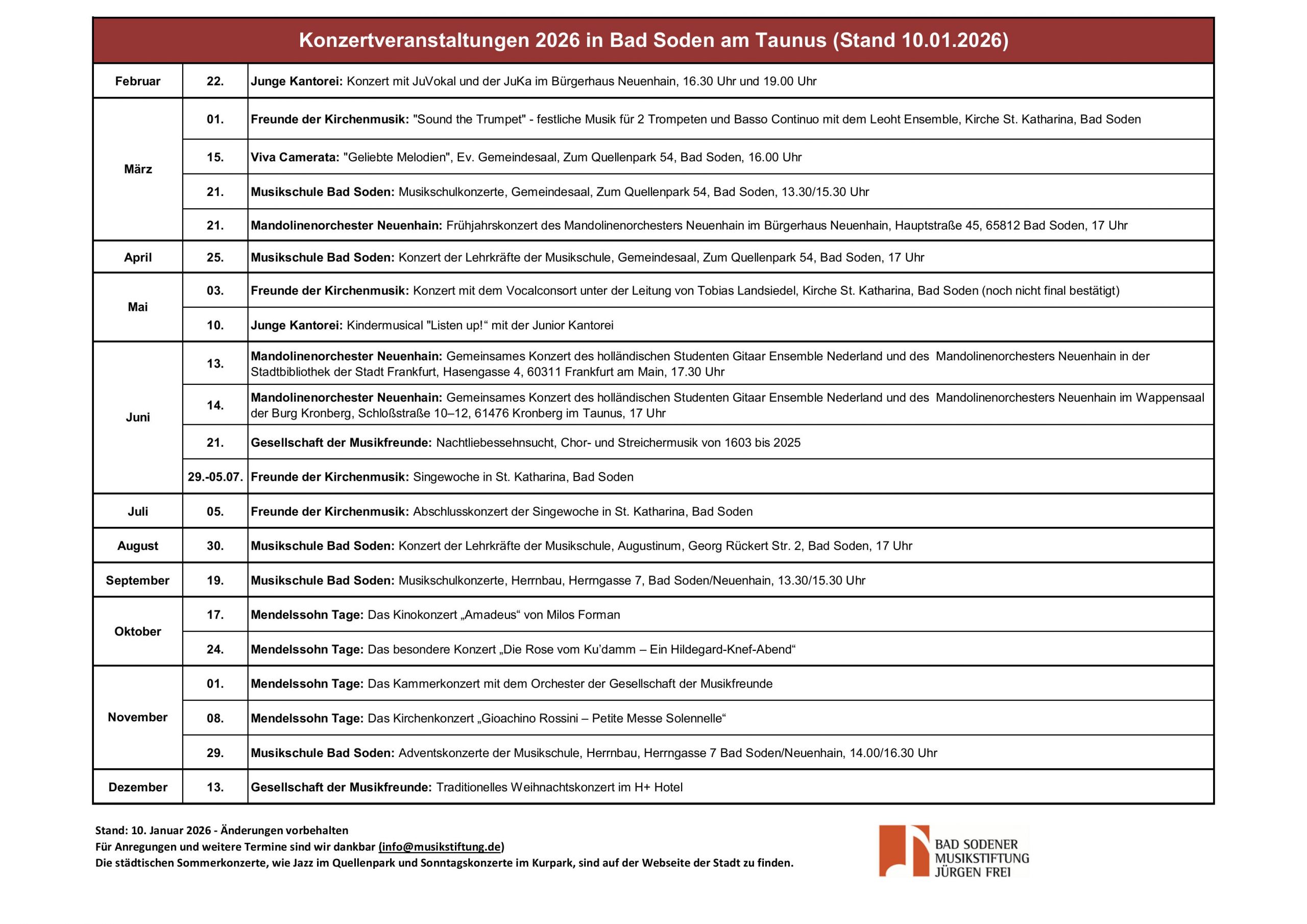 Wir danken unserem zahlreichen Publikum, der Stadt Bad Soden, den Sponsoren, der Presse,